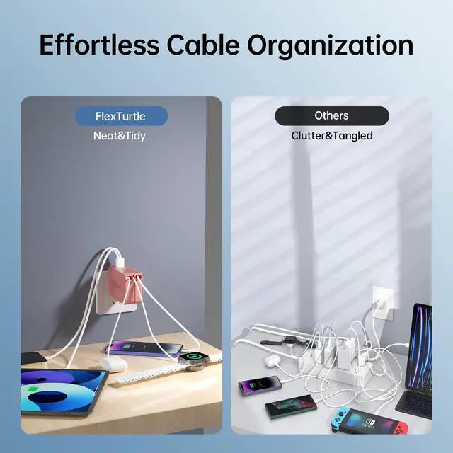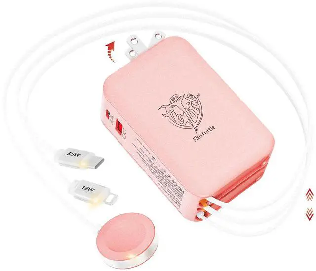 • Space-Saving Retractable Design -The FlexTurtle retractable phone charger wall plug features three 3.2ft retractable cables (USB-C, IOS, and Apple Watch), eliminating clutter. Perfect as a phone charging station for desks, nightstands, or as travel accessories for women and men