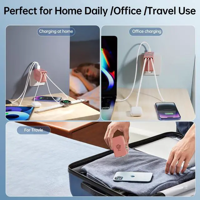 • Safe & Efficient Power -Built-in protections against overheating and overcharging. The USB C charger block supports Apple Watch fast charging and PD speeds for iPhonesyour airplane travel essentials and traveling essentials all in one, ensuring a reliable Apple charging block for home or travel