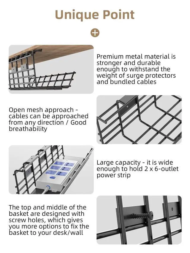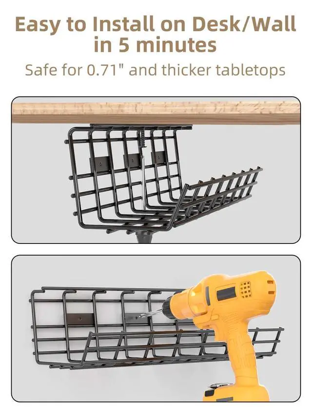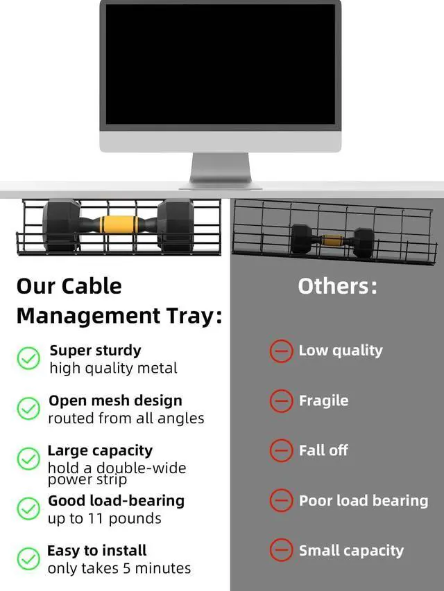 Use this under desk cable management tray on home office standing desk and keeps the messy power cords, USB hubs, power strips out of the way and allows a neat and organized no matter if you’re standing or sitting at the desk