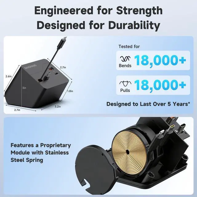 [Extendable Charger for Greater Convenience] The retractable charger comes with a 4.92 ft (150cm) long extension cord for greater flexibility. It's convenient to use on any desktop, bedside table, or workspace. The included nano-gel base securely holds the charger in place