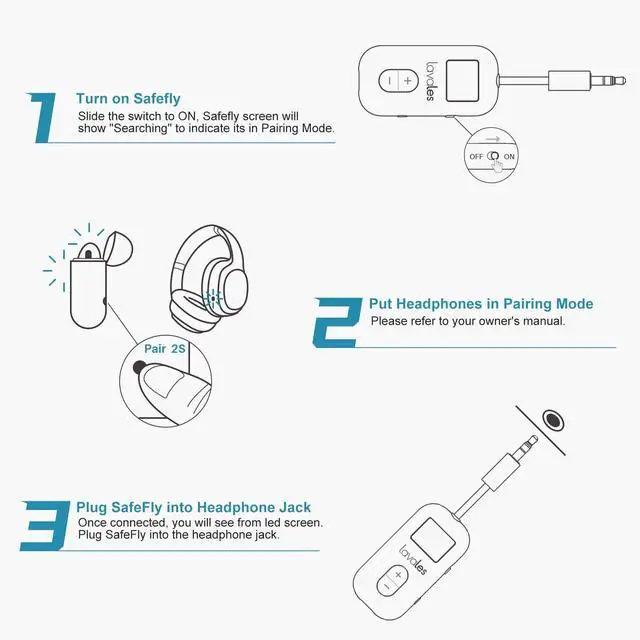 - Plug the SafeFly into the 3.5 mm audio source and enjoy wireless audio