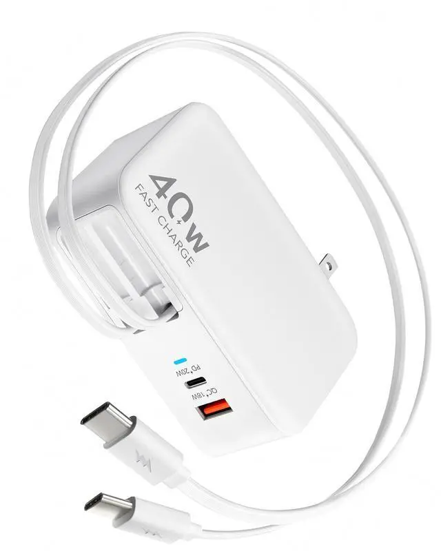 Retractable USB C Charger Wall Plug with 35.5 in/90cm Type C Cables Cords, 40W Fast Charging Foldable Block Multi Charger for All Devices for iPhone 17/16/15/14/13/12, iPad, Galaxy, Pixel