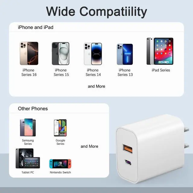 ![Main image of [4 Pack] USB C Charger Block Charging Block Type C Charger 20W Wall Chargers for iPhone Air/17/17 Plus/17 Pro/17 Pro Max/16/16 Plus/16 Pro/16 Pro Max/15/15 Pro/15 Pro Max/14/13/12 Pro/Samsung/Android](https://c1.neweggimages.com/productimage/nb640/C5MSD2603110M5X8T29.jpg)