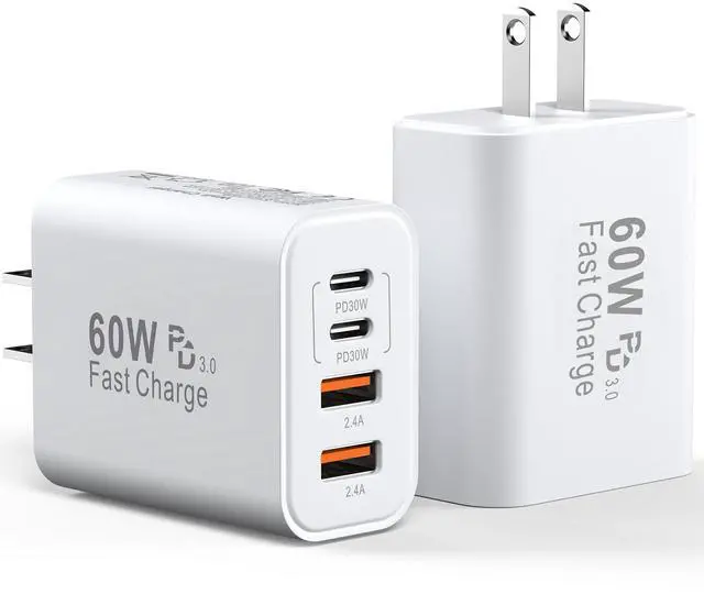 USB C Charger Block, 2Pack 60W 4 Ports Type C Fast Phone Charging Cubes PD USBC Wall Plug+QC 3.0 USB A Charger Head Power Brick Box for iPhone 16/15/14/13/12/11 Pro Max, Samsung Galaxy, Pixel