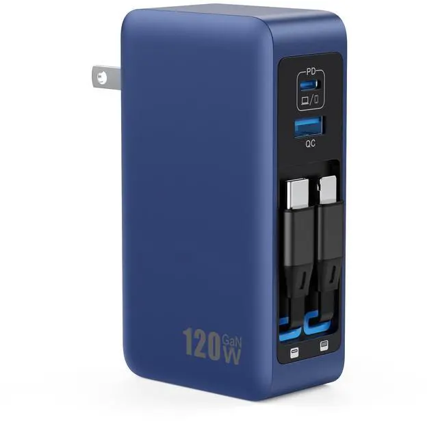 120W USB C Charger Block with 2 Built-in Retractable Cables,4-in-1 GaN IV Foldable Plug Wall Charger Fast Charging Station,PD 65W Laptop Adapter Widely compatible with your laptops, iPhone, Android phones and more.