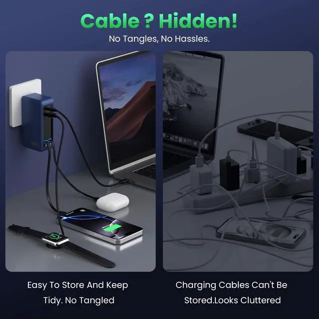 Eliminate Messy Cords + USB-C PD Fast Charging Desktop Charger -Easy to Store and Keep Tidy, No Tangled