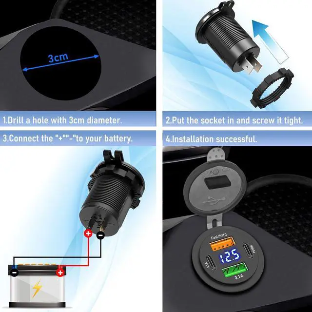 Built with a waterproof and dustproof design, this 12V car charger is ready for any adventure. Whether you're driving through rain, dust, or off-road terrain, it ensures safe and stable charging. Perfect for RVs, boats, motorcycles, and all outdoor vehicles.