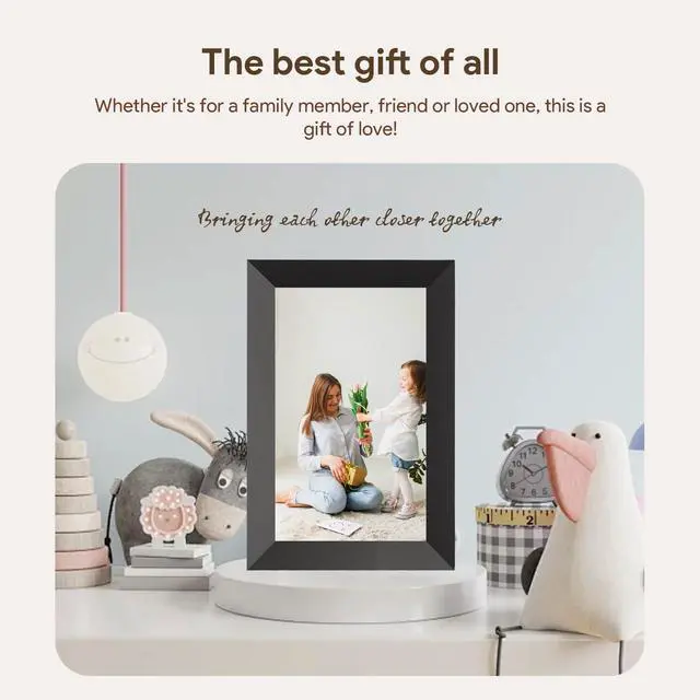 10.1-inch IPS HD Touch Screen: This cloud photo frame is equipped with 1280*800 HD resolution with 180° ultra-wide viewing angle and accurate color reproduction to perfectly present every precious photo. The touch design is simple and easy to use, especially suitable for elders to operate, easy to browse photos, adjust brightness, adjust volume, play slideshow and so on.