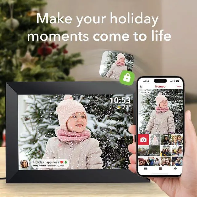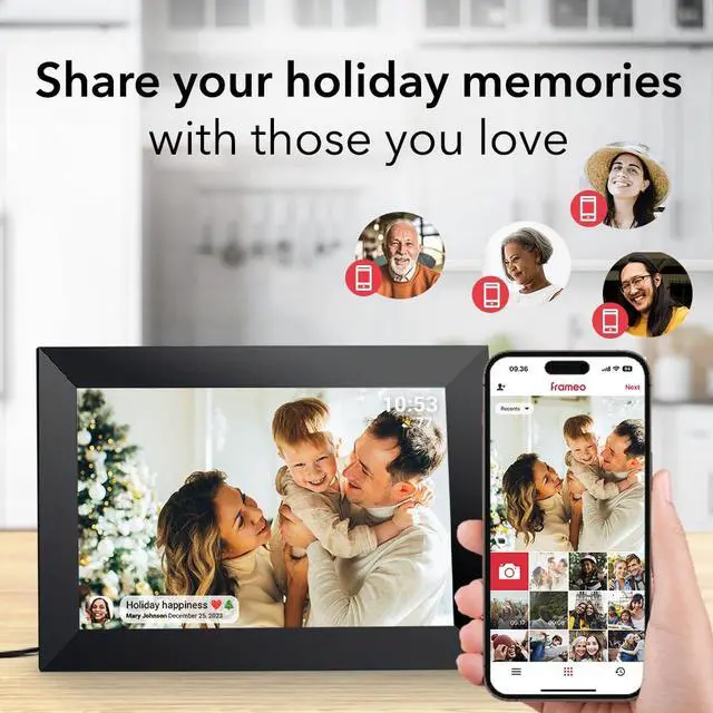 WiFi Digital Picture Frame IPS Touch Screen HD Disply, Video Clips and Slide Show, Auto-Rotate, Wall Mountable, Send Photos Instantly from Anywhere with via Frameo APP ( 10.1 INCH)