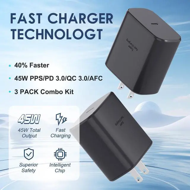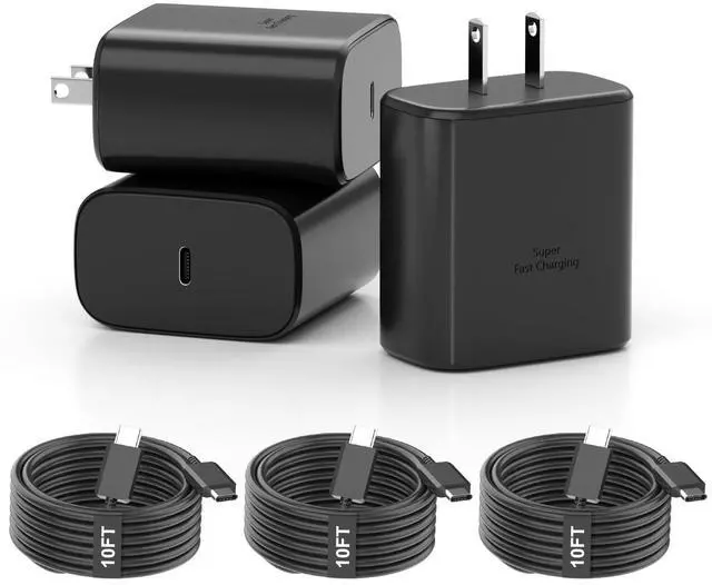 It includes 3 10ft long charger cables and 3 pack of 45w charger block, much cheaper than those one charger and one cable kit.