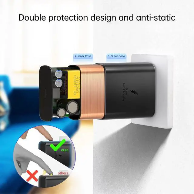 The charger has an extra layer of copper film to facilitate better heat dissipation when charging, and keeps long time fast charging.