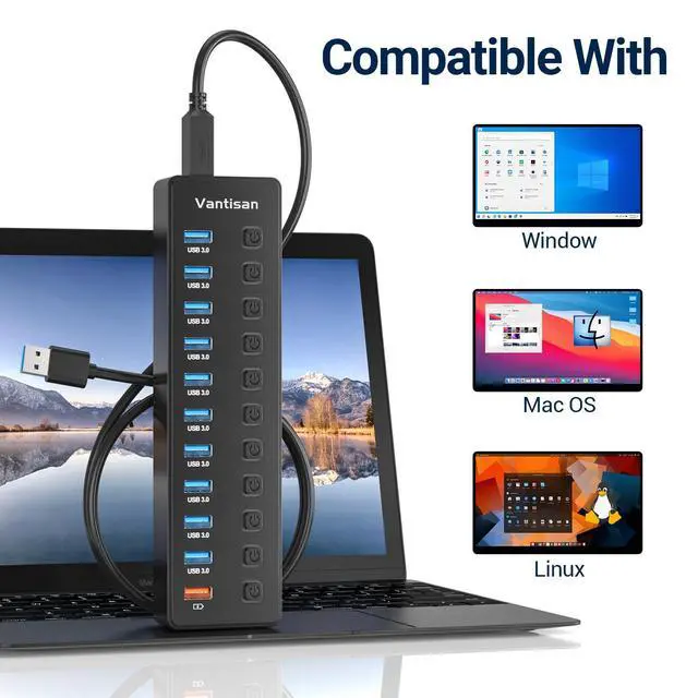Equipped with an advanced chip as a built-in surge protector, providing over-current and over-voltage protection to ensure the security and durability of this powered USB hub.