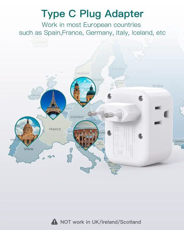 Type C plug adapter which can work in most of Europe such as Germany, Italy, France, ect, NOT WORK INUK / Ireland / Scotland