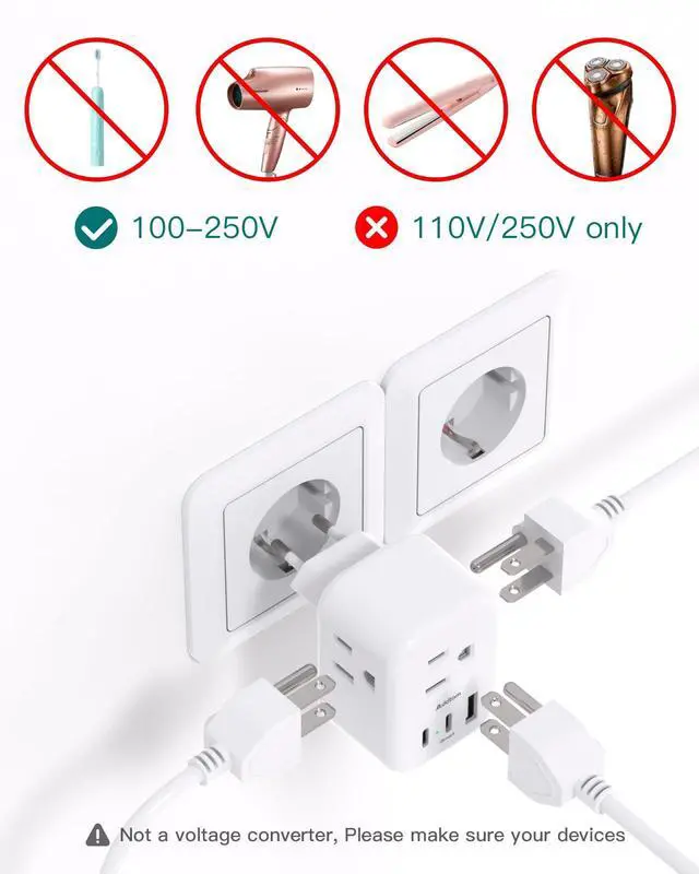 Please make sure your devices to support 100V-250V Dual Voltage; Especially hair dryer, curling iron, straightener, electric razor, etc
