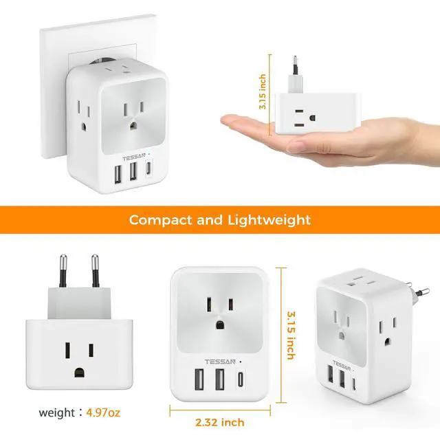 With lightweight and compact design, this European travel plug is easy to carry, saving your precious space of your luggage, backpack