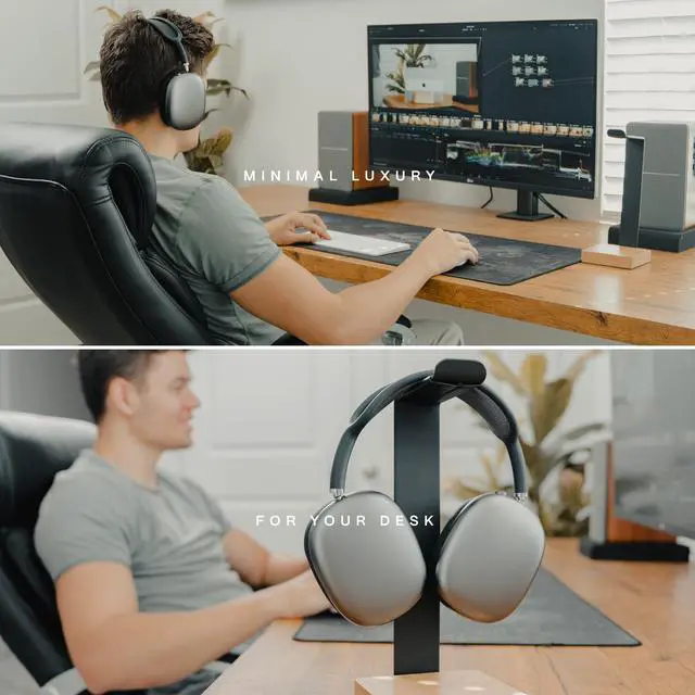 Crafted with a heavy-duty base, solid wood material, and a robust metal rod, this universal headphone holder seamlessly blends with your premium setup.