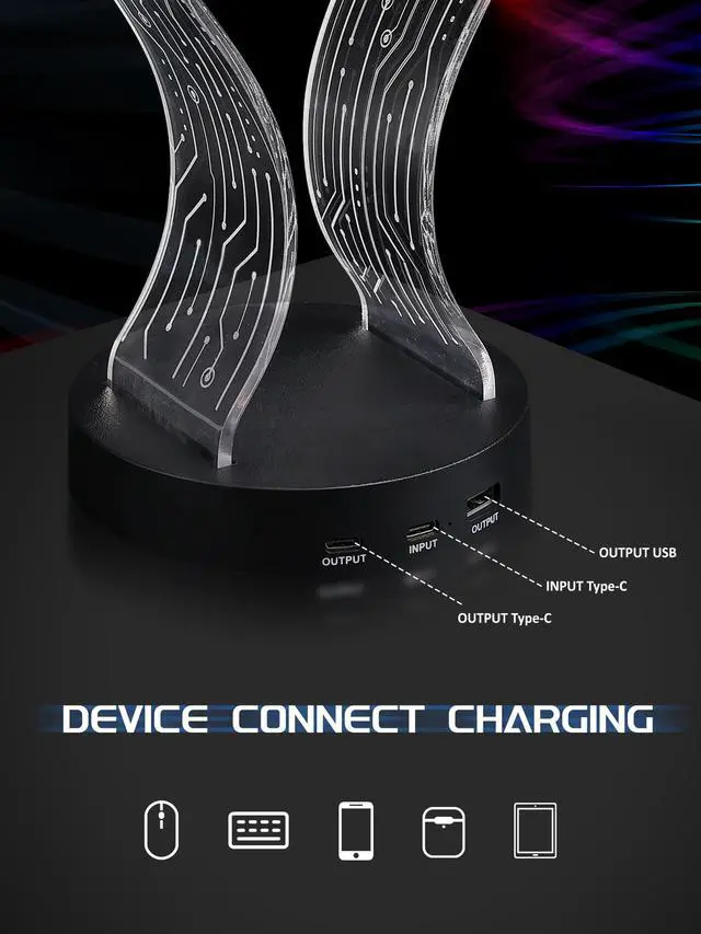 This gaming headset stand has a color changing feature. It displays 16 fantastic lighting effects, which can be selected at the push of a button or remote control. You can enjoy different lighting modes in different scenes.