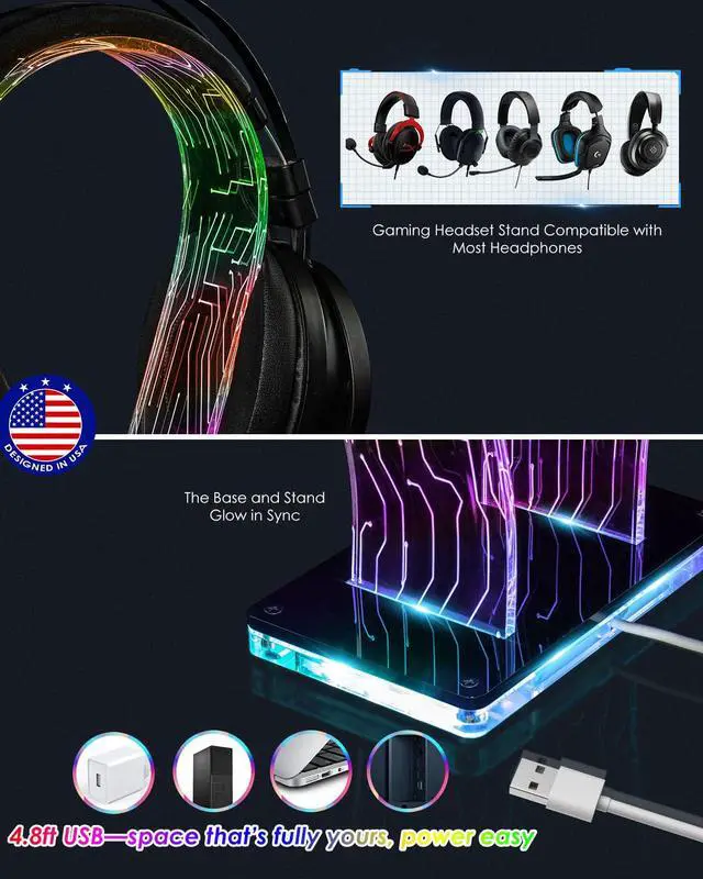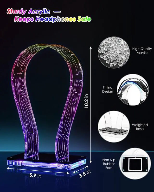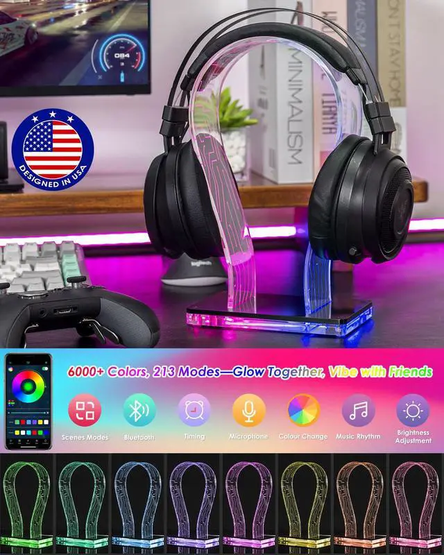 RGB Headphone Stand with 213 Modes 60K Colors