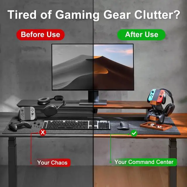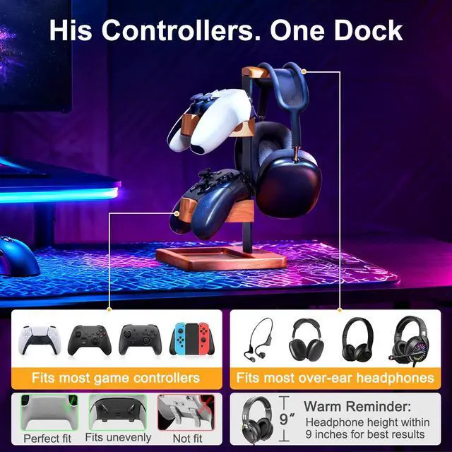 CLEAN & CARINGTired of seeing controllers and headsets scattered on the desk? This wooden gaming controller and headphone stand keeps controllers and headsets neatly stored, providing a thoughtful solution for kids, family, brothers, grandsons, or sons in law, ensuring their gaming setup is always tidy and accessible.