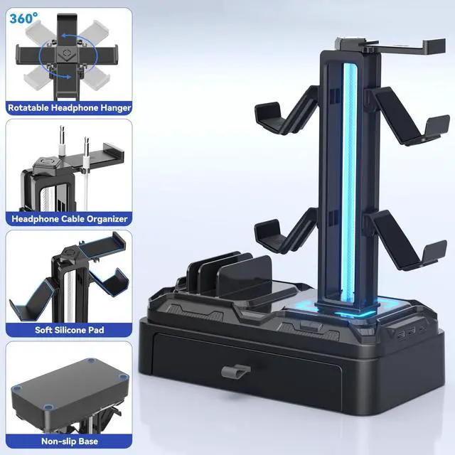 The headphone hanger features a 360° rotating design, allowing you to adjust it to any angle. It fits all headphone sizes from any brand.