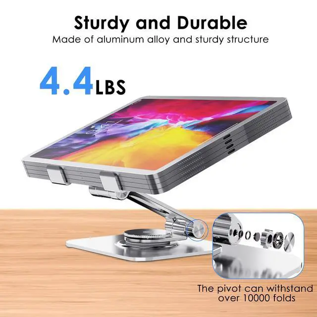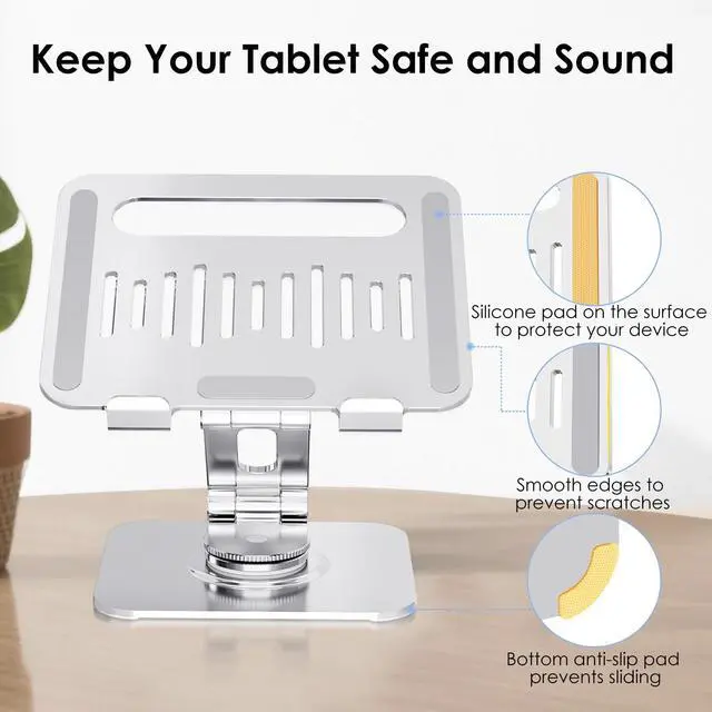 This tablet stand for desk features a 360-degree rotating base—just turning the stand gently, and you can easily share your screen with family, friends, or coworkers.