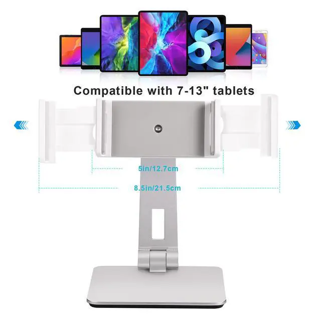 Wide Compatibility: Universal holder fits for 7"-13" tablet, compatible with iPad Pro 12.9 11 10.5 9.7/Air/Mini, Samsung Tab, Surface Pro, Kindle Fire, Nexus, E-Reader, etc. (Note: Does not fit tablet with a case)