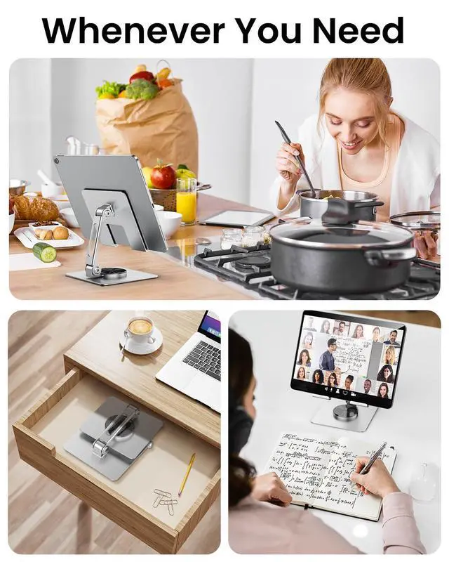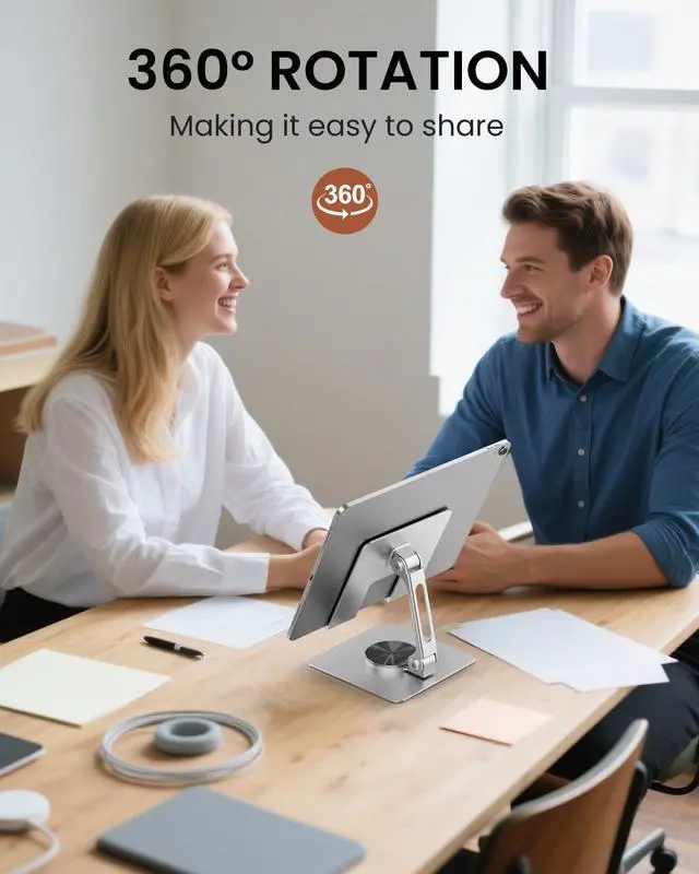 ° : This rotating iPad stand comes with a 360° rotating base, allowing for easy rotation. It is perfect for business negotiations, video conferences, and family use when you want to share your screen with others.