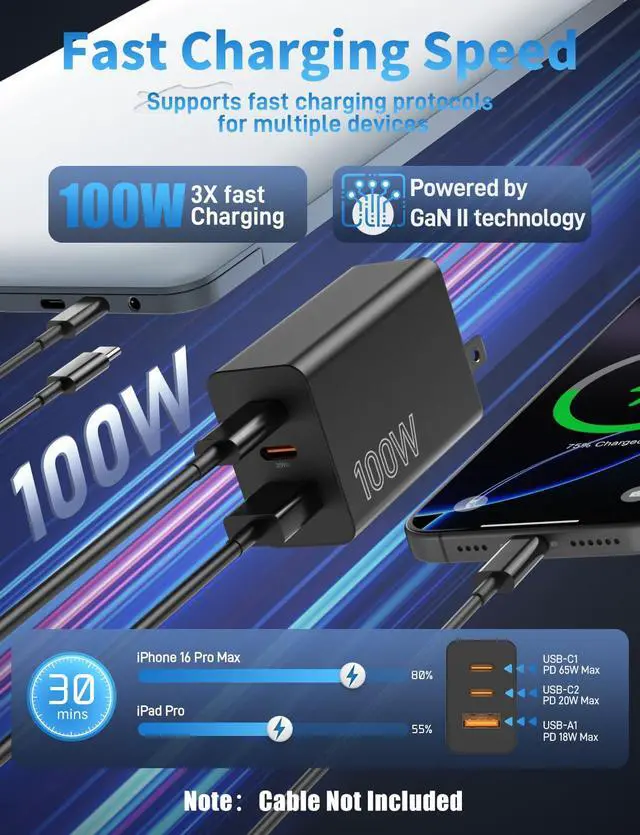 100W Universal Charger - Fast Power for iPhone, Galaxy, Laptops & All Devices