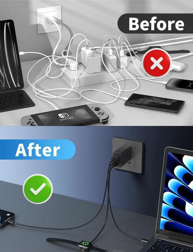 Charge ALL your devices: iPhone Series, Galaxy Series, Google Series phones, MacBooks, Dell laptops, iPads, AirPods (all models), HomePod, PS5/Switch/Steam Deck, and portable power banks—all via ONE compact unit. Ditch tangled cords and boost efficiency. Ideal for multi - device users!