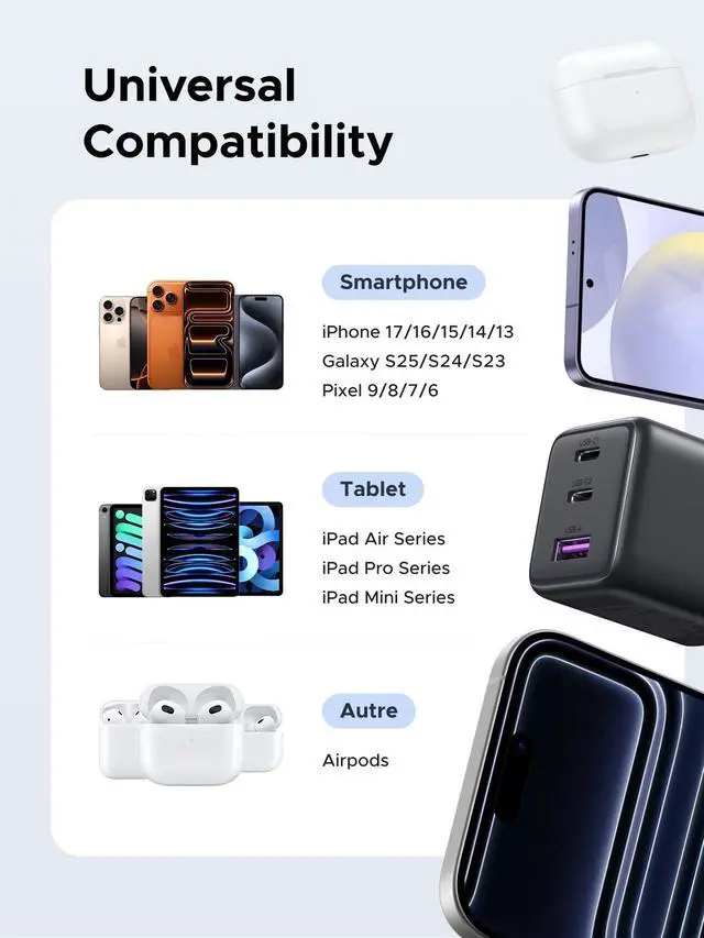 ![]() 45W 5 Port Charger | ![]() 300W 5 Port Charger | ![]() 45W 3-Port | ![]() 65W 3-Port | ![]() 45W Retractable 2-Port | ![]() 30W 3-Port with Cabel x2 | ![]() 100W 4-Port |