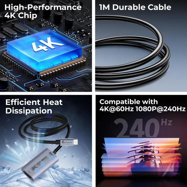 The product supports 4K 60Hz input &4K 60Hz output. Please ensure that the cable you are using supports the corresponding resolution, such as 1080P or 4K, to ensure optimal video quality