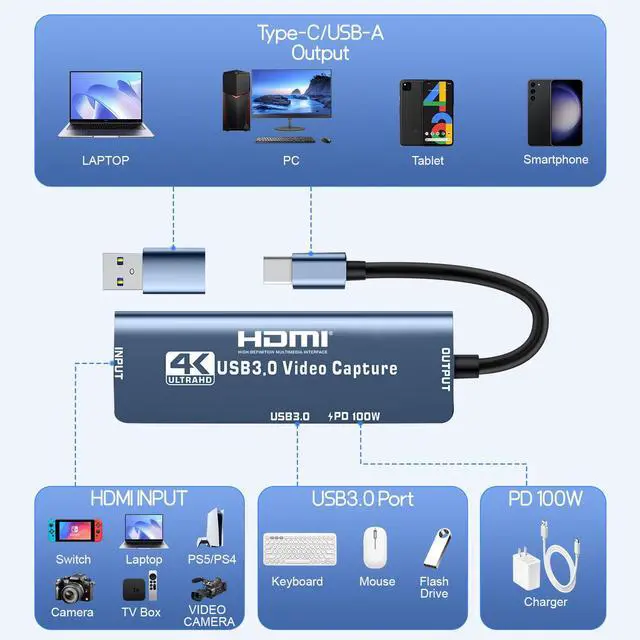 - USB-C for Signal Output: The USB-C port (or USB-A when using a USB-C to USB-A adapter) is for signal output. Please ensure your signal output device has corresponding video capture software, as OBS, to enable screen capture.