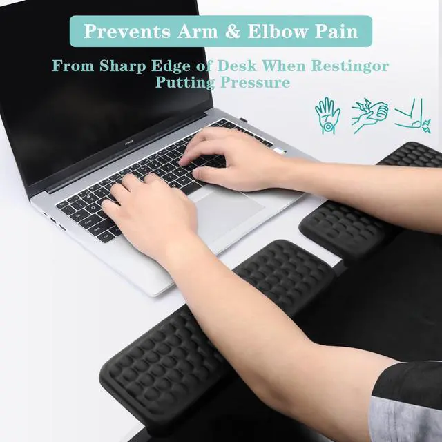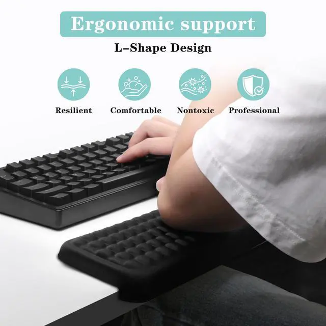 Ergonomic L-Shaped Design: Snugly fits desk edges, providing optimal support for your wrists,forearms and elbows, reducing pressure and discomfort from long hours of work.