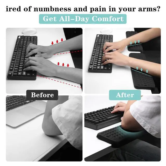 Easy to Clean and Long-Lasting: The smooth and stain-resistant surface can be easily wiped clean with just a damp cloth, making this keyboard arm rest perfect for perfect for home offices.