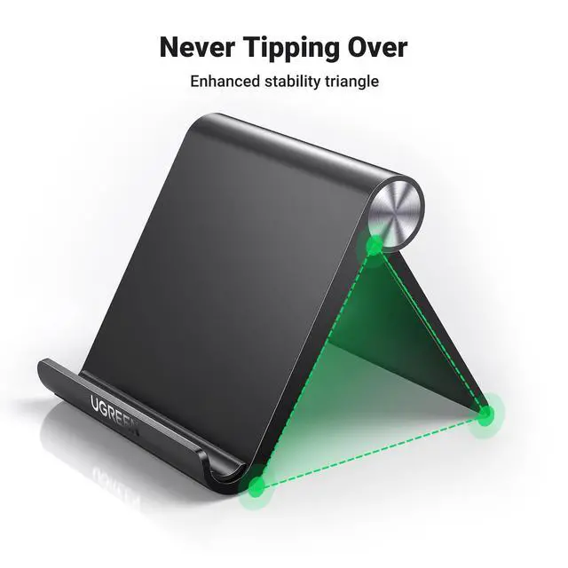 • Sturdy and Stable: Made of high-quality ABS, this cell phone stand is built to last. Plus, the desktop phone stand forms a stable triangle to prop up your phone more sturdily, no need to worry about tripping or tipping over. UGREEN desk phone stand is equipped with upgraded strip silicone mats on both bottom and the cradle, effectively protecting your cellphone and the holder itself from sliding