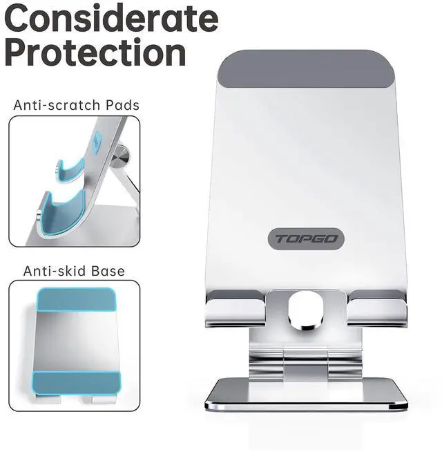 Sturdy & Protective: The cell phone stand is made of high quality premium aluminum, it stays firmly in place, hold your phone steadily, no worry any wobble at all. The rubber pads can protect your phone from any scratching and sliding.