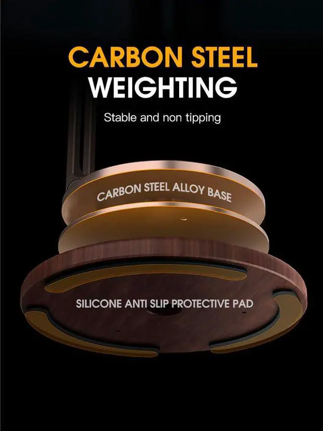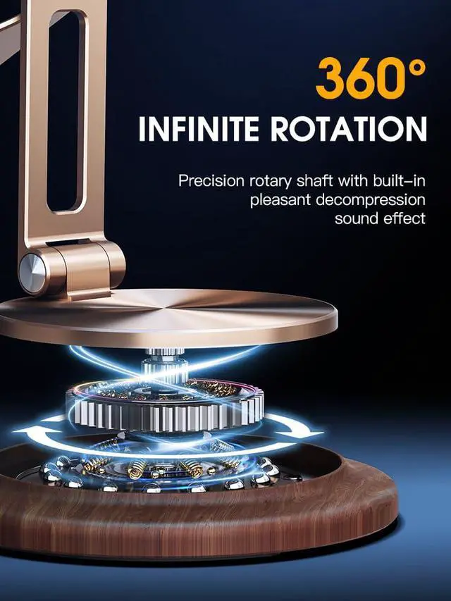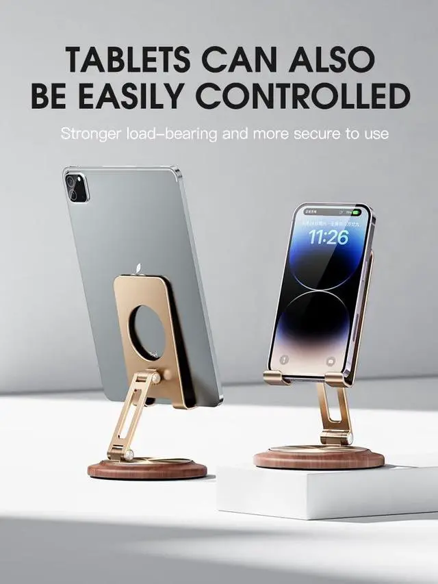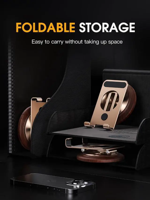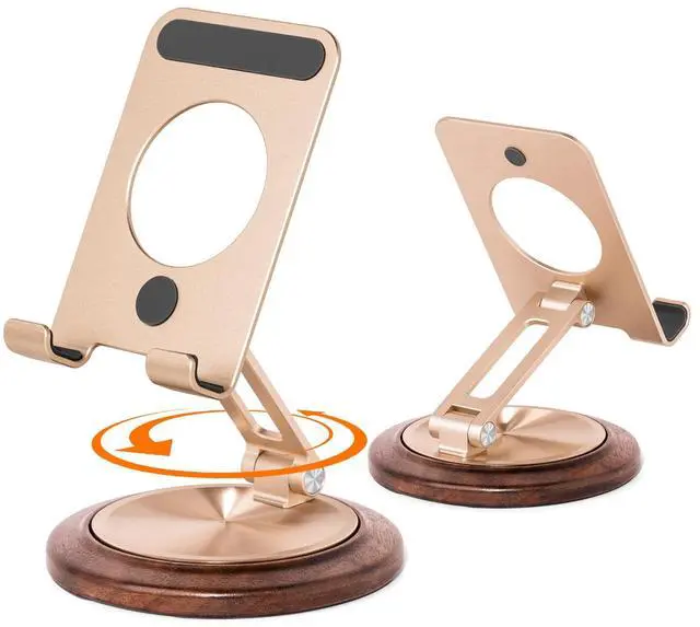 Exquisite appearance & practicalitycell phone stand offers both an exquisite appearance and practicality as a desktop phone accessory. It provides a convenient solution for various activities such as watching videos, reading books, making calls, playing games, By using this stand, you can free your hands from constantly holding the device. This allows for a more comfortable and enjoyable experience while engaging in different tasks on your phone.Relaxing sound and anti-loosening pivotThe stand is equipped with excellent adjustment functions. With its three rotation axes, including 360° rotation and height adjustment, you can easily adjust the angle and height of the stand. This allows you to place your phone in the most comfortable position, ensuring the best viewing angle and line of sight at all times.Portability & widely usedStability and security are also prioritized in the design of this stand. It is made of high-quality aluminum alloy and features a soft silicone patch in the contact area with your phone to prevent scratches. The anti-slip pad on the stand hook prevents the device from sliding, and the base is designed with heavy carbon steel alloy and silicone non-slip pads for enhanced stability. Even during phone operation, the stand remains steady and will not shake or fall down.Furthermore, the stand offers a relaxing sound and anti-loosening pivot. The precision rotation axis on the base enables a pleasant, stepless 360° rotation that can help relax your body. The durable damping rotation axes ensure that the sta