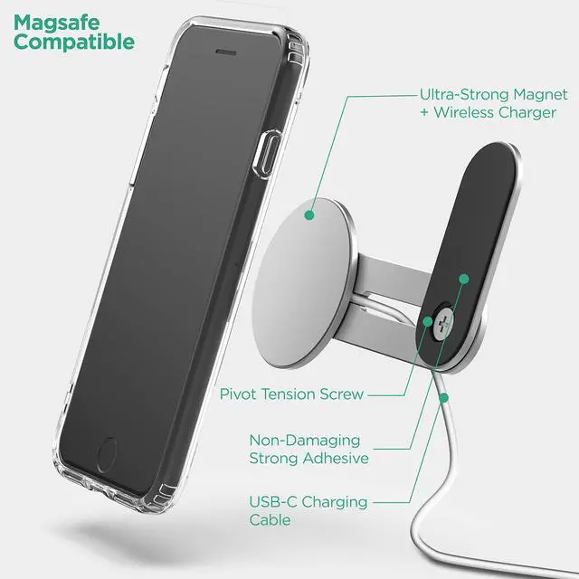 Place your phone in the perfect position while working! Aluminum magnetic phone holder with MagSafe wireless charging. Great for both laptops and desktops.