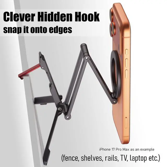 - Compact, foldable, and multi-functional: switch between desktop tripod mode and hook-mounted positioning in seconds.
