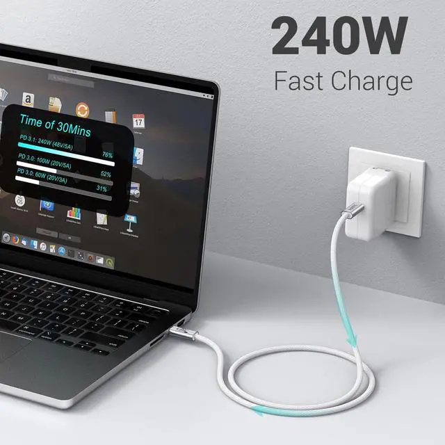 [240W PD Cable] : The usbc to usbc cable offers 240W 48V/5A fast charging. Charging USB C devices from phones to laptops