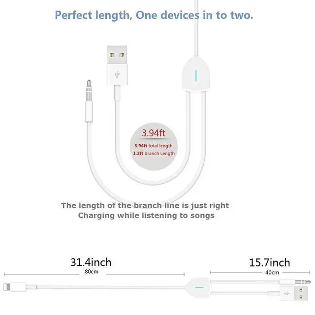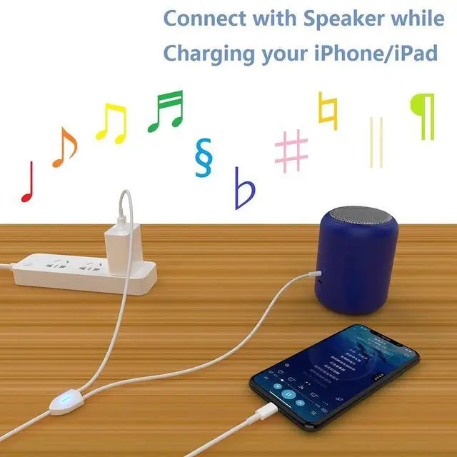 - Whether you want to charge in the car, on the go, or at home, the iPhone aux charging cable makes it possible to listen to Lightning Audio and power your iPhone/iPad, simultaneously.