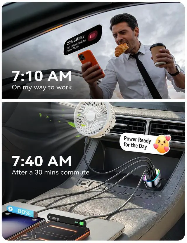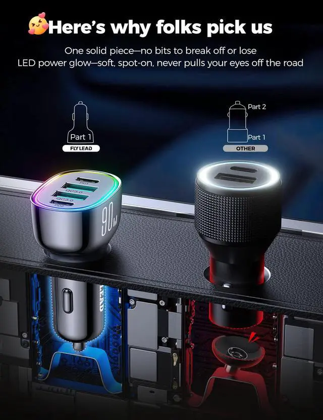 2025 Newest Upgraded 90W(Max) USB C Car Charger Fast