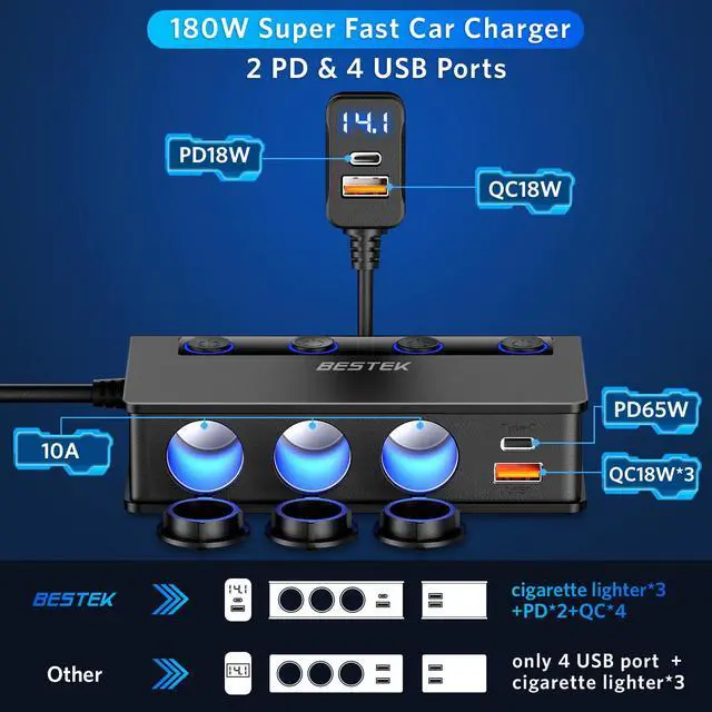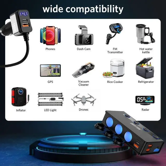 | PD65W & QC3.0 Fast Charging | Cigarette Lighter Adapter | 185W Cigarette Lighter Adapter | PD65W & QC3.0 Fast Charging | 200W Cigarette Lighter Adapter | Cigarette Lighter Splitter |