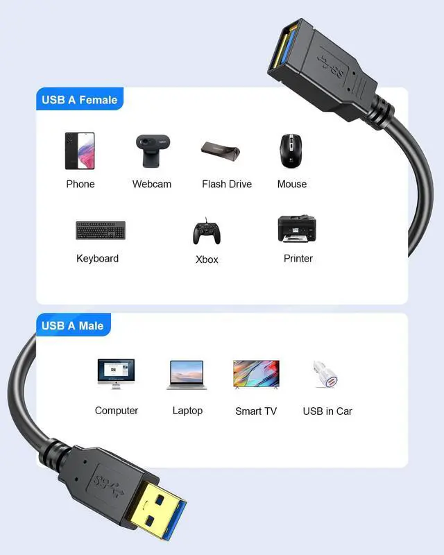 USB Extension Cable USB 3.0 Extender Cord Type A Male to Female