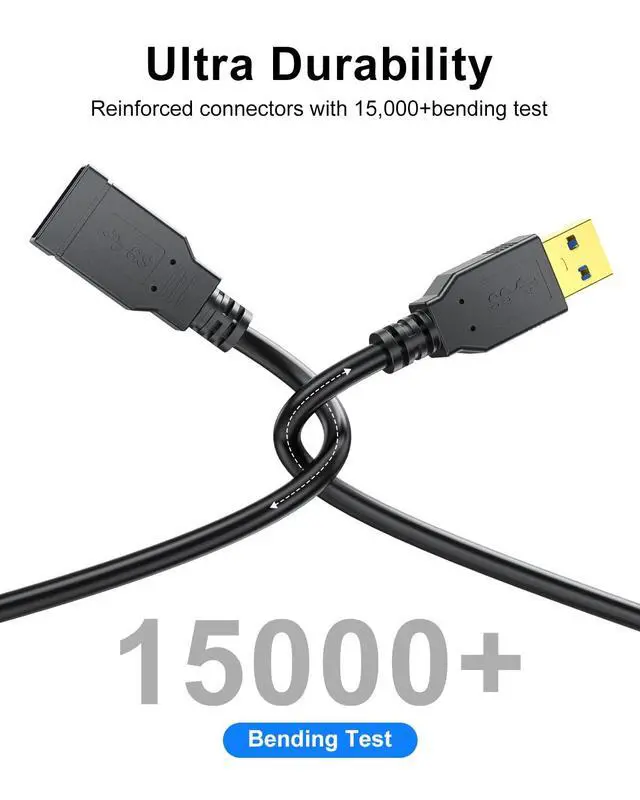 This USB extender cord supports high speed USB 3.0 data transfer rate up to 5Gbps - 10X faster than USB 2.0 (480 Mbps), which allows you to transfer HD movies or files in just seconds, when your host is equipped with USB 3.0 port. Also backward compatible with USB 2.0, 1.1 and 1.0 (speed limited by USB bus). Plug& Play on universal system, no driver required.