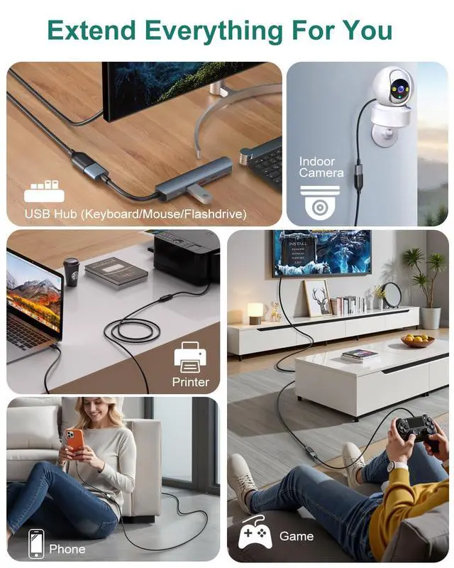 ![Alt view image 4 of 7 - USB Extension Cable, 10 ft [5Pack] Extra Long Type A Male to Female USB 2.0 Extender Cord USB A Charging & Data Transfer for Keyboard, Mouse, Printer, Flash Drive, Phone, LED Lights-Black](https://c1.neweggimages.com/productimage/nb640/C5MSD26031606EG2328.jpg)