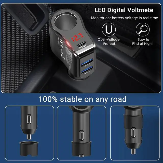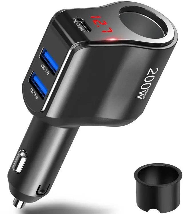 - Based on the traditional best-selling multiple car charger, our cigarette lighter socket splitter has been upgraded with 30W PD 3.0 + dual 18W QC3.0 USB ports and 200W super power socket.