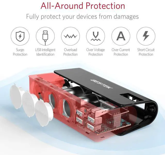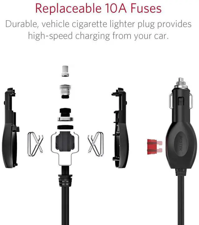 Built-in 10A replaceable fuse, anti-corrosion metal connectors, heavy duty copper wires and protective circuits ensure that your devices will never overload or overheat.