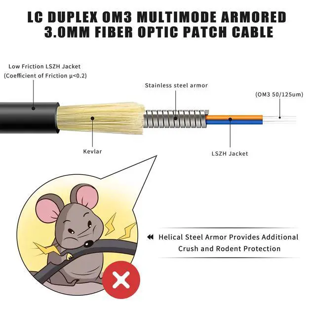 LC Duplex OM3 Multimode Armored 3.0mm Fiber Optic Patch Cable