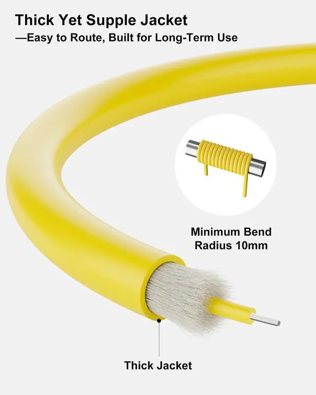 The Minimum Bend Radius of this LC LC fiber patch cable os2 is 10mm (dynamic) / 5mm (static)